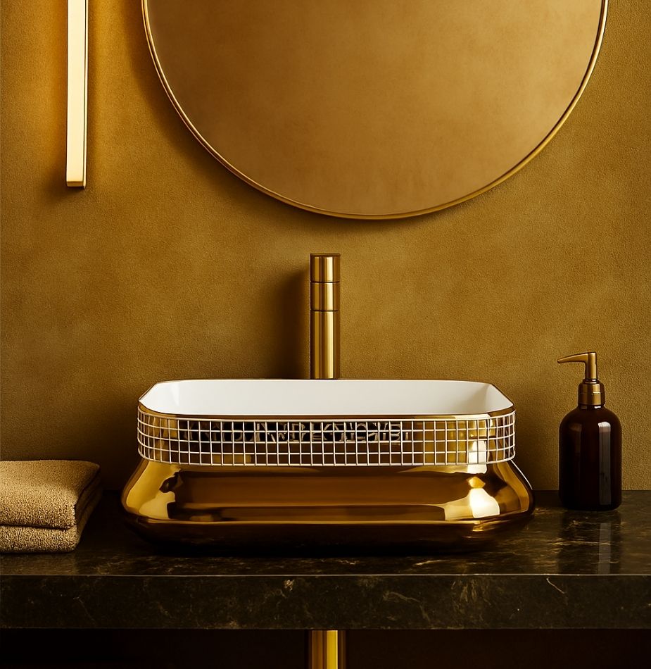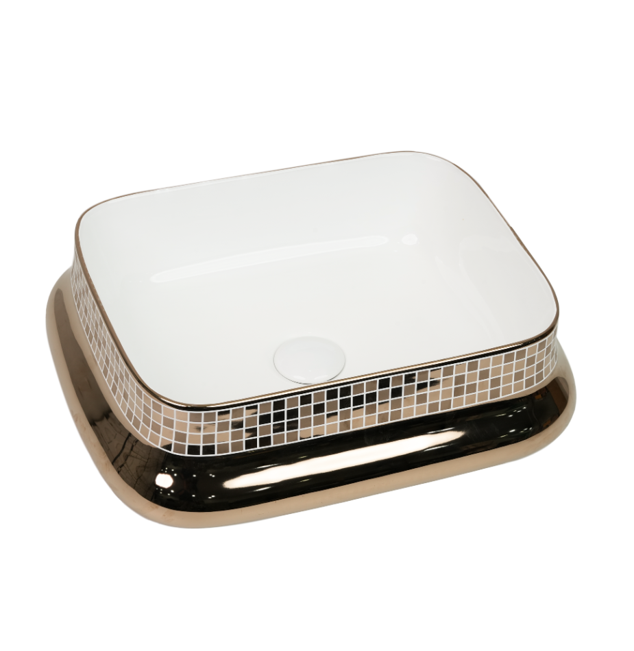 The TIVANO Matrix Mosaic presents a rectangular pottery-inspired design with a glossy mosaic top and clean white interior. Its handcrafted appeal and refined finish make it a stylish addition to modern and traditional spaces alike.