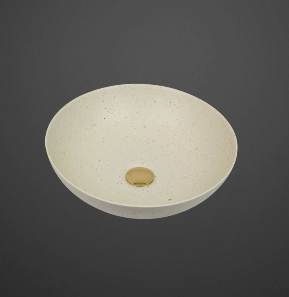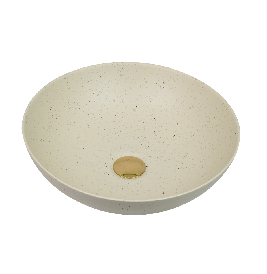 The Mosaic Jewel basin captures timeless artistry with its terrazzo-style round bowl in a warm off-white tone. With a soft matte texture and handcrafted appearance, it blends subtle elegance with organic charm — perfect for both contemporary and rustic bathroom designs.