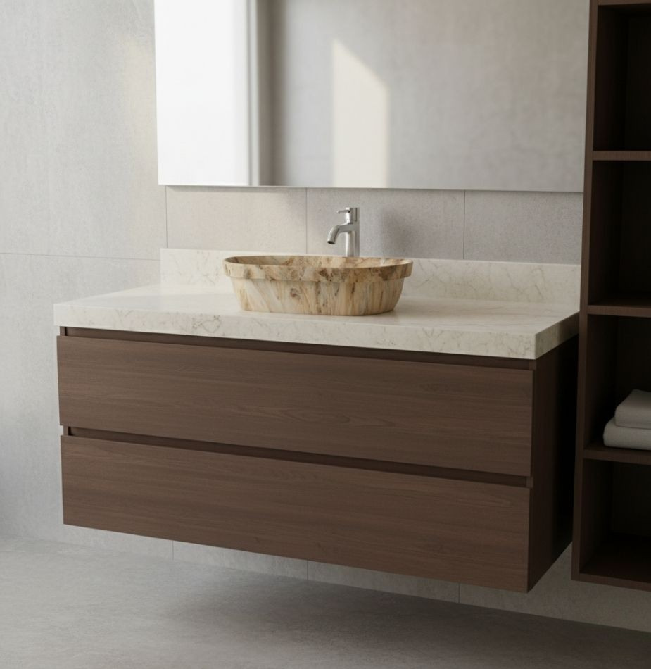 The TIVANO Sandstone Whisper draws inspiration from natural sandstone textures, featuring a soft trapezium shape and seamless marble finish. Its soothing beige tone introduces a warm, earthy touch to any modern bath space. Crafted with precision and a smooth glossy surface, it combines elegance with exceptional performance.
