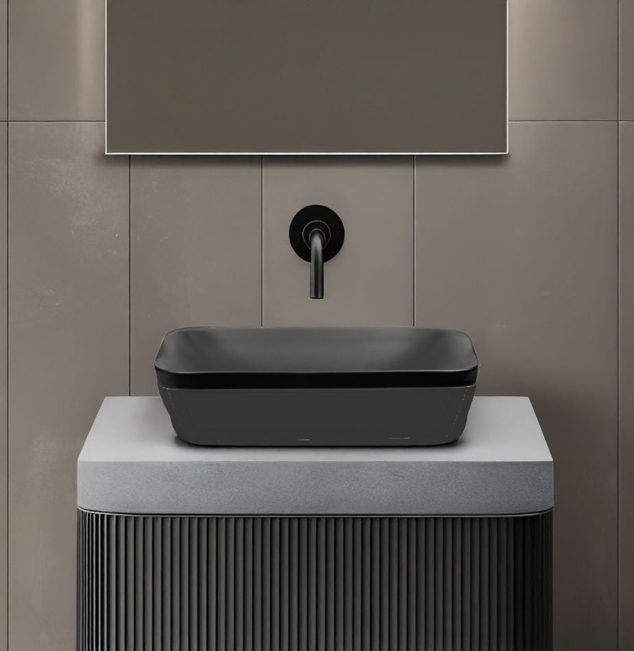 The TIVANO Rustic Ember offers a bold rectangular silhouette with a wide-open profile. Its rich matte black body delivers a powerful minimalist aesthetic, creating a striking contrast in light-toned interiors.