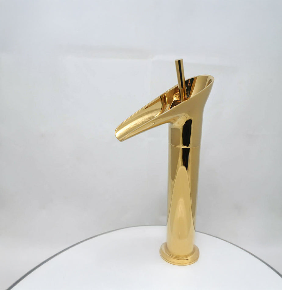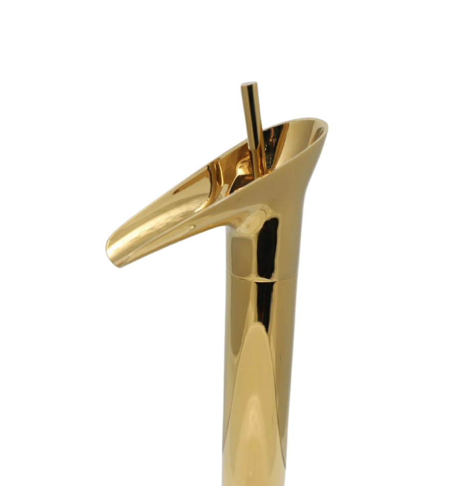 The Aurea Stream faucet features a curved contemporary design that blends elegance with smooth functionality. Its mirror-gold sheen adds a luxurious accent to modern and classic bathrooms alike. Crafted from premium brass, it offers long-lasting performance with a rich, reflective surface. Ideal for both residential and hospitality spaces, this faucet elevates any basin setup with refined simplicity.
