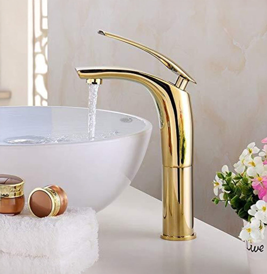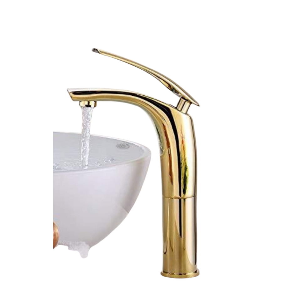 The TVN-384-G features an elegant gold curved spout design that brings elegance and functionality to any bathroom space. Its corrosion-resistant body and luxury finish complement both modern and classic interiors. Crafted from premium-quality brass with a polished coating, it ensures durability, resistance to stains and scratches, and effortless maintenance. Designed for countertop installation, this faucet offers a refined look with lasting performance — ideal for both residential and commercial environments.