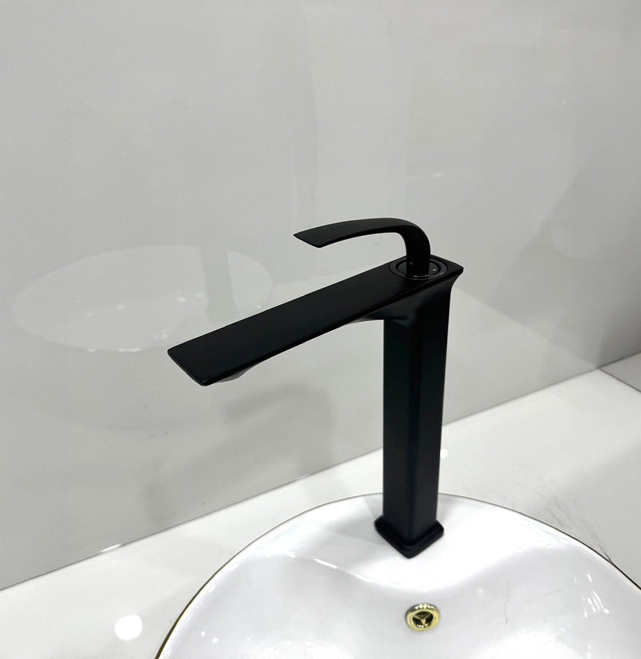 The Noir Arc (045-B) redefines industrial elegance with its bold sculpted curve and deep matte-black finish. Its minimalist form radiates quiet confidence, making it the centerpiece of contemporary bathrooms. Crafted with a rust-resistant brass body, soft-touch handle, and ceramic cartridge, it delivers smooth functionality with modern allure. Designed for countertop installation, this faucet adds sophistication to any modern basin setup.
