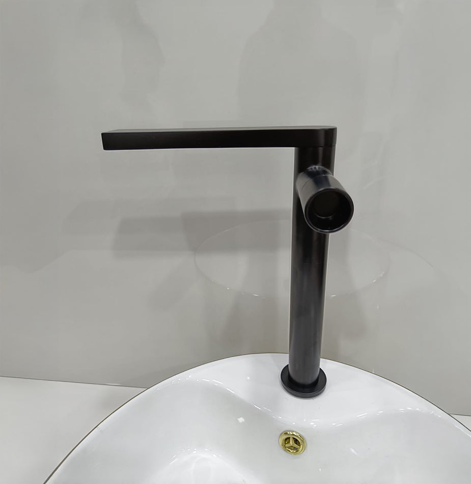 The Noir Edge faucet defines contemporary sharpness. Its crisp edges and jet-black matte finish give bathrooms a bold, architectural appeal — where style meets strength.