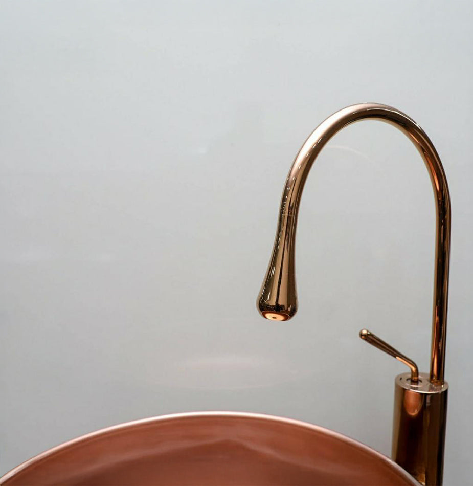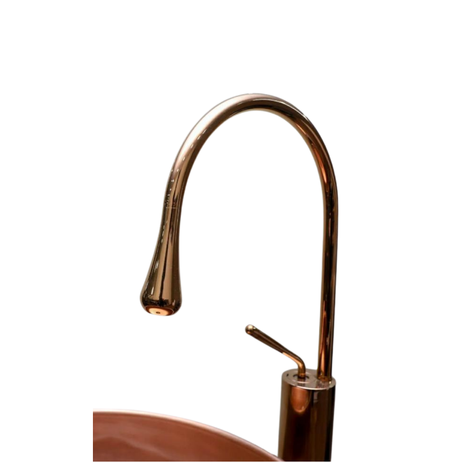 The Regal Arc faucet embodies refined craftsmanship with its swan-neck curve and soft rose gold shimmer. A symbol of sophistication, it complements both marble and neutral-toned bathrooms effortlessly.