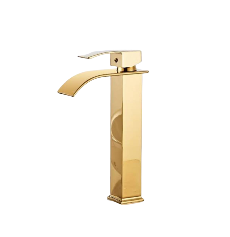 The TVN-385-G features a flat spout with sharp gold edges that brings elegance and functionality to any bathroom space. Its premium brass body and modern silhouette complement both contemporary and classic interiors. Crafted with a polished coating, it ensures durability, resistance to stains and scratches, and effortless maintenance. Designed for countertop installation, this faucet offers a refined look with lasting performance — ideal for both residential and commercial environments.