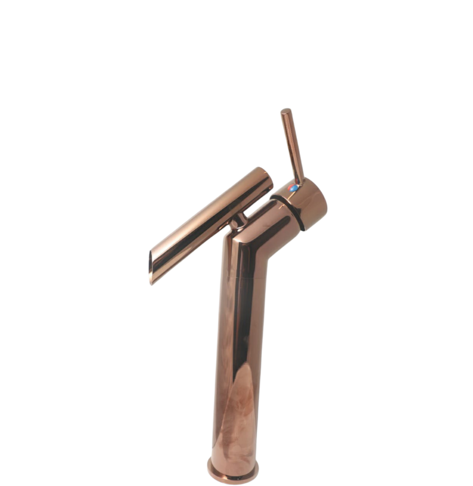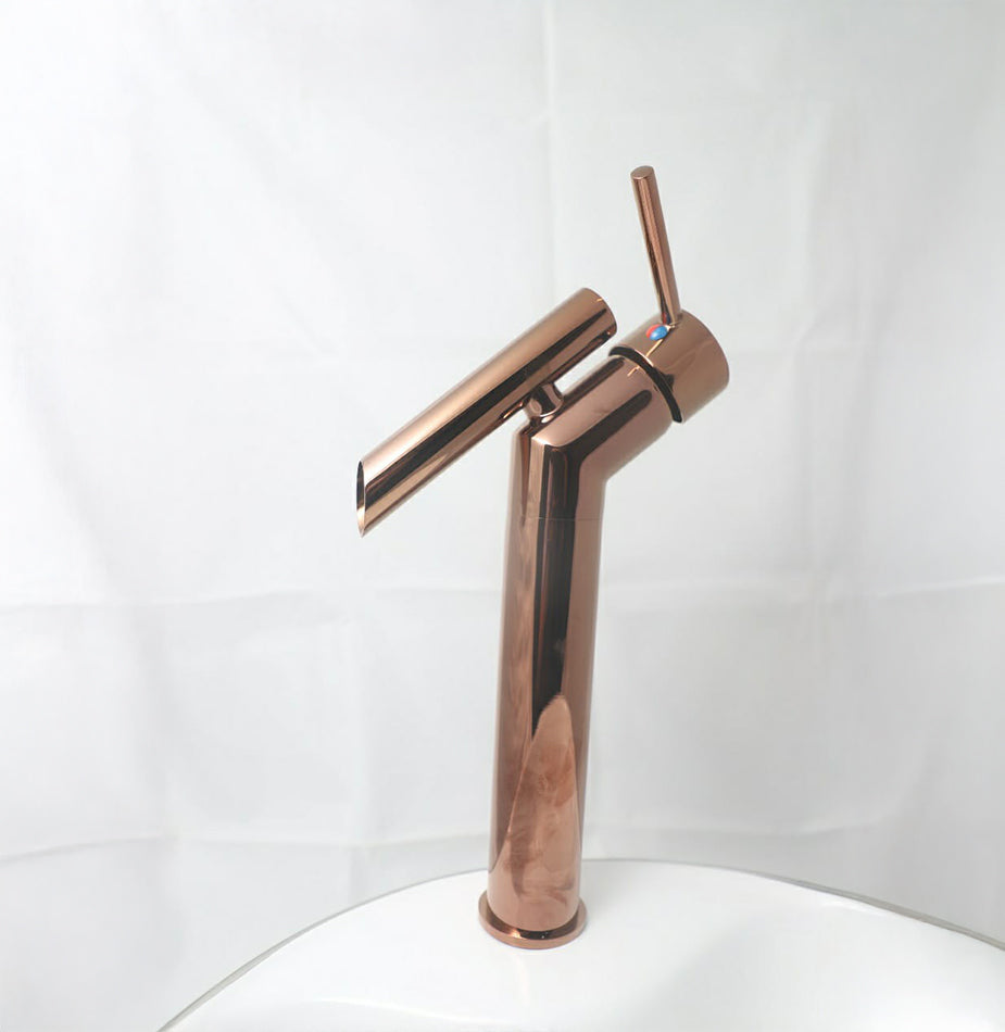 The Zen Flow faucet blends a streamlined modern spout with a warm rose gold tone. Designed for balance and control, it offers both aesthetic appeal and functionality, perfect for luxury homes or boutique washrooms.