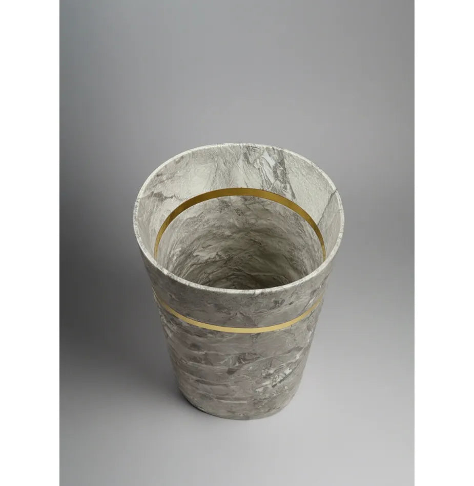 Design: Textured body with gold trim and stone-like finish