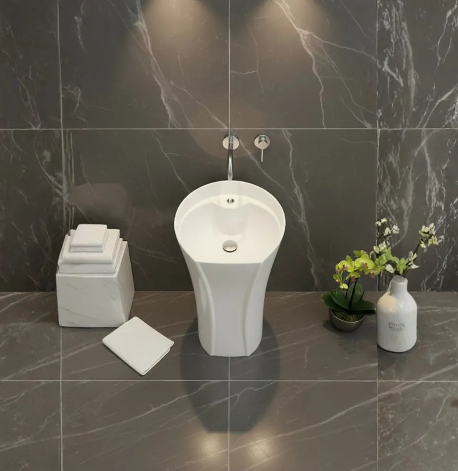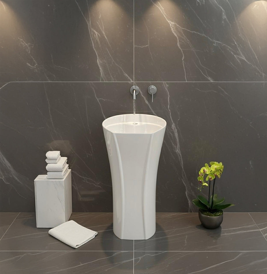 The Millican Flow White features fluid curves and a sculpted silhouette that blends form and function. Its soft matt texture complements dark marble backdrops. Crafted from premium-quality ceramic with a nano coating, it ensures durability, resistance to stains and scratches, and effortless maintenance. Designed for wall-mounted faucet setup, this basin offers a refined look with lasting performance — ideal for both residential and commercial environments.