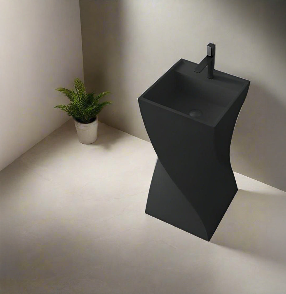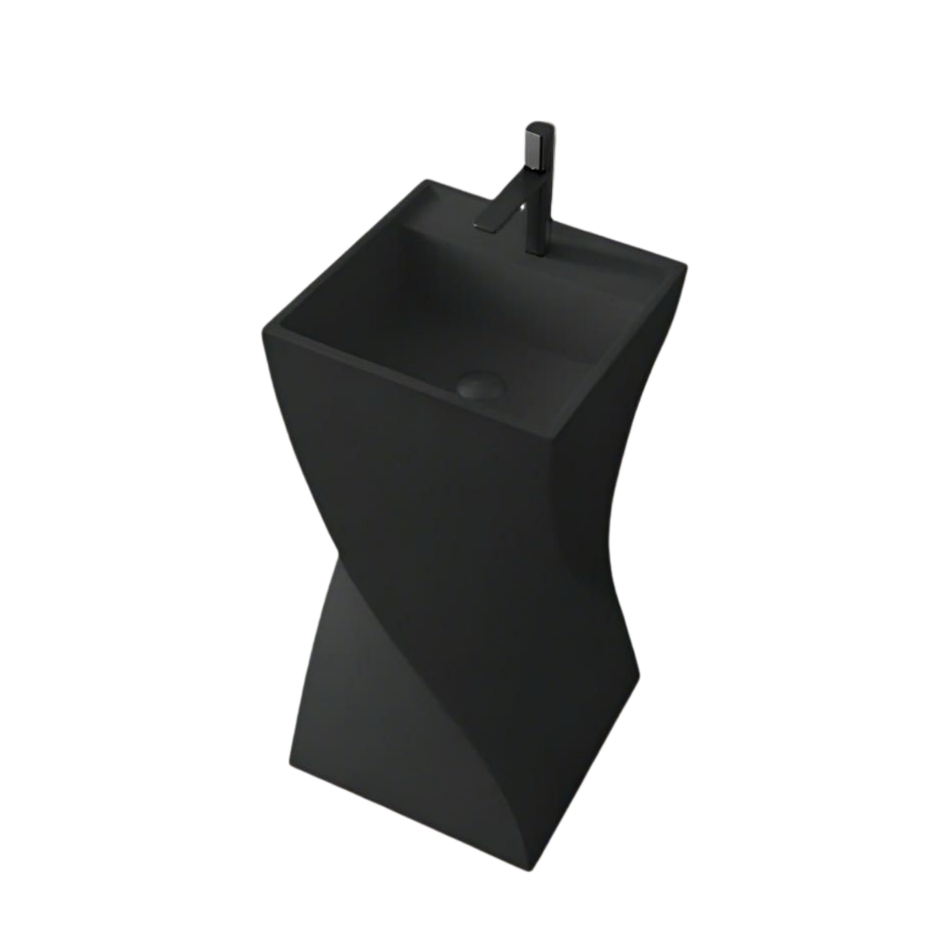 Design: Twisted body with matte finish and rectangular basin