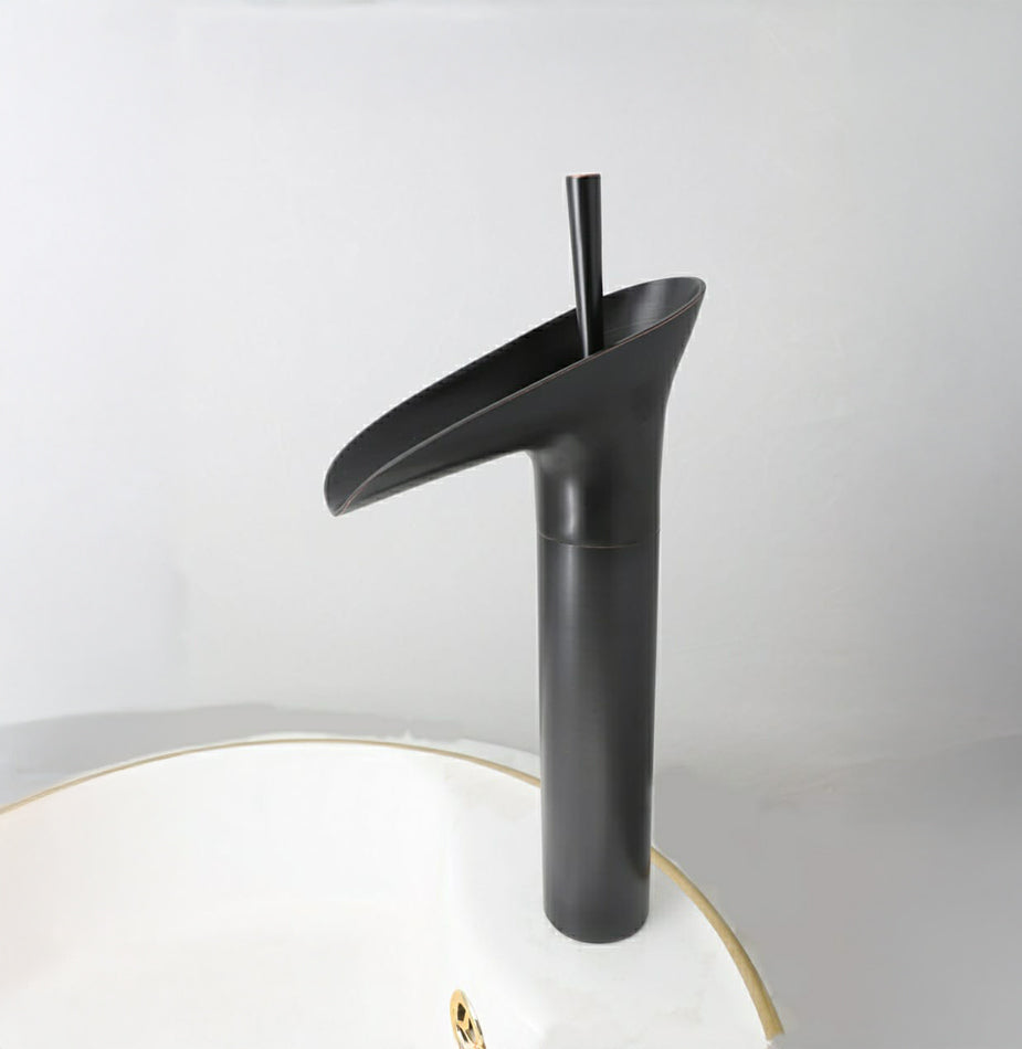 The Aero Matte Black faucet embodies a tall, curved silhouette with minimalist sophistication. Its sleek matte texture and smooth handle reflect understated luxury, making it perfect for modern interiors. Built from solid brass, it ensures durability and consistent performance with a soft, modern aesthetic.